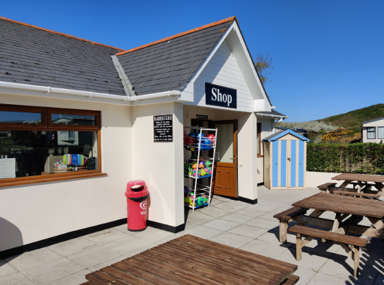 Selling milk, bread, fruit &veg, alcohol, BBQ meat (and veggie/vegan options), pastries, confectionery and groceries as well as serving espresso coffees and hot breakfast rolls. You don’t have to be staying on site to visit the shop!